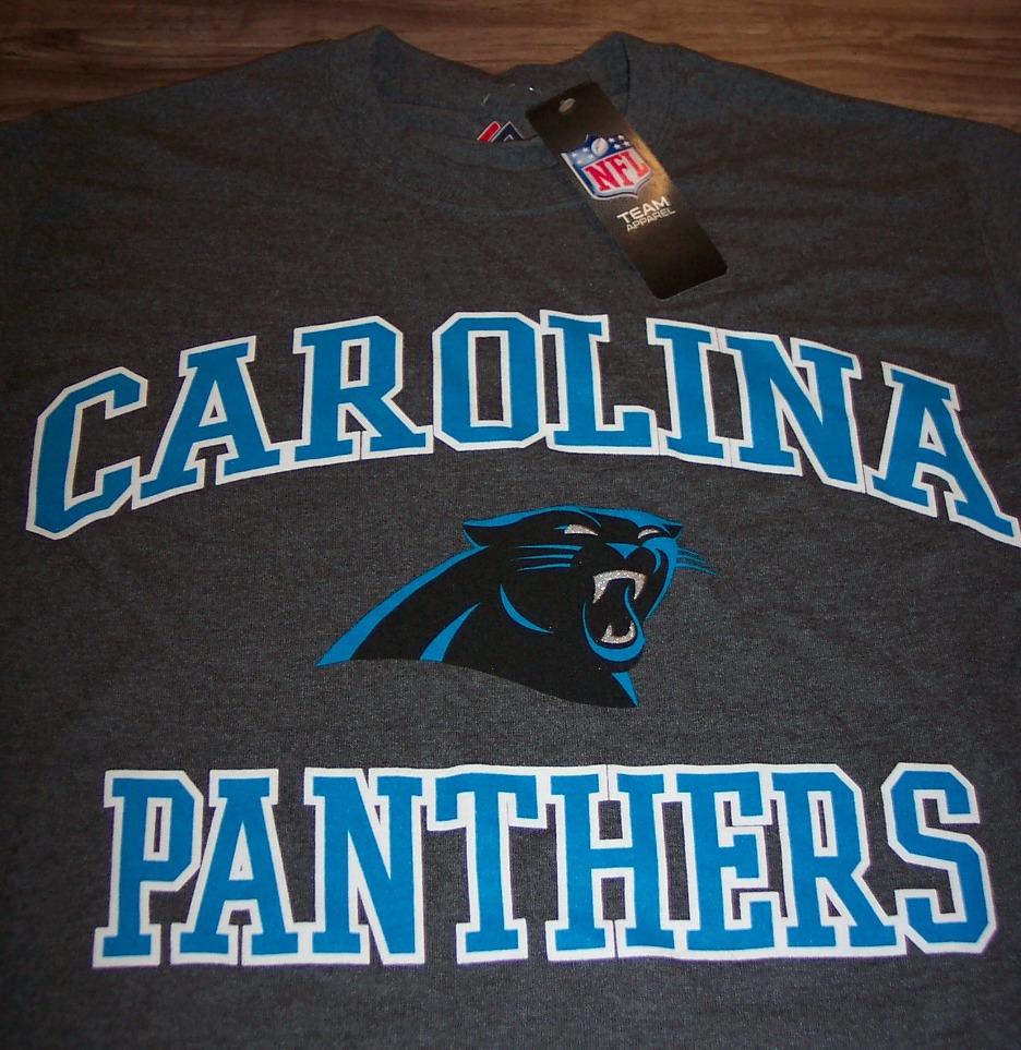 This is a CAROLINA PANTHERS NFL FOOTBALL T-Shirt. It is a size SMALL and it is NEW with the tag. It is 18 inches from armpit to armpit and 27 inches in length. It is an official NFL TEAM APPAREL Shirt. Combine auctions to save on shipping. Winning bidder to e-mail within 3-days and payment to be received within 10-days. AG