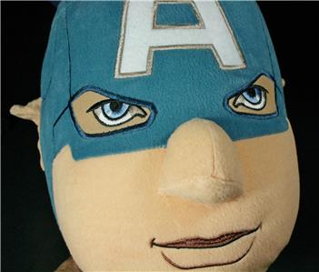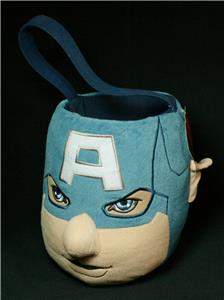 The perfect accessory for your patriotic avenger’s night of trick-or-treating or for a unique Easter basket. It is a plush figural Captain America head Halloween treat bucket. This large basket measures approximately 11” high (excluding handle) and is approximately 9” in diameter.