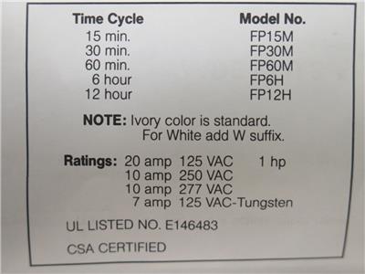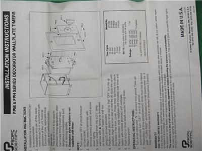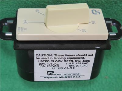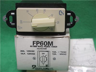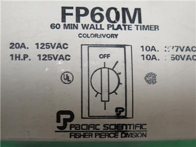 This listing is for one new Pacific Scientific Division of Fisher Pierce 60 Minute Timer Wall Mount with Decorator Style Wall Plate Trim. Model FP60M, Ratings: 20 Amp @ 125 VAC, 10 Amp @ 250/277 VAC. Proudly Made in USA. Includes timer with knob, Ivory Decorator front wall plate cover trim, instruction sheet, and mounting screws all just as shown. Control for: Electric Fans, Lights, 1 HP Electric Motors and some other similuar types of equipment. UL Listed, CSA Certified, Two were available at time of listing both shown with minor outer box package storage wear. Shipped randomly. 751928003528. See the 19 expanding pictures provided for more details and please make sure that this is the part you need, as it is a non-returnable item. Thank you.