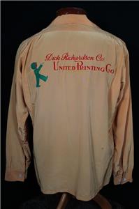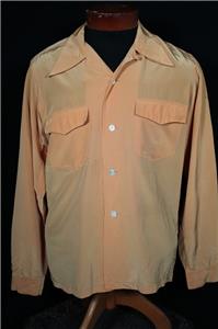 RARE VINTAGE 1940'S LONG SLEEVE LIGHT TAN BROWN RAYON SHIRT WITH LONG TEARDROP COLLAR