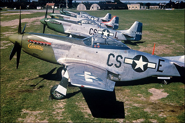Image of P-51D Mustangs of the 359th Fighter Group lined up at East Wretham.