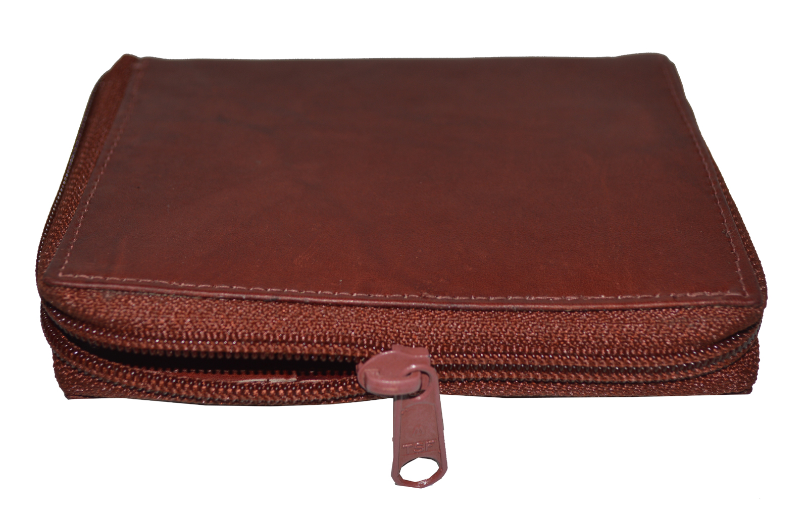 A genuine leather credit card holder. It is secured zip-around bifold wallet. It has 12 credit card slots and 2 additional slots. It also has 1 ID holder and 2 bill slots. Very hard to find wallet. A REALLY GREAT BUY.