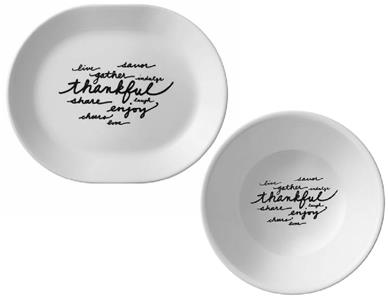 With its handwritten look, the design on these serving pieces reminds everyone at the table what’s most important about mealtime. It’s a fun everyday option and the perfect for serving a special meal. Set the whole table with coordinating Corelle Celebrations pieces for an especially festive feel.