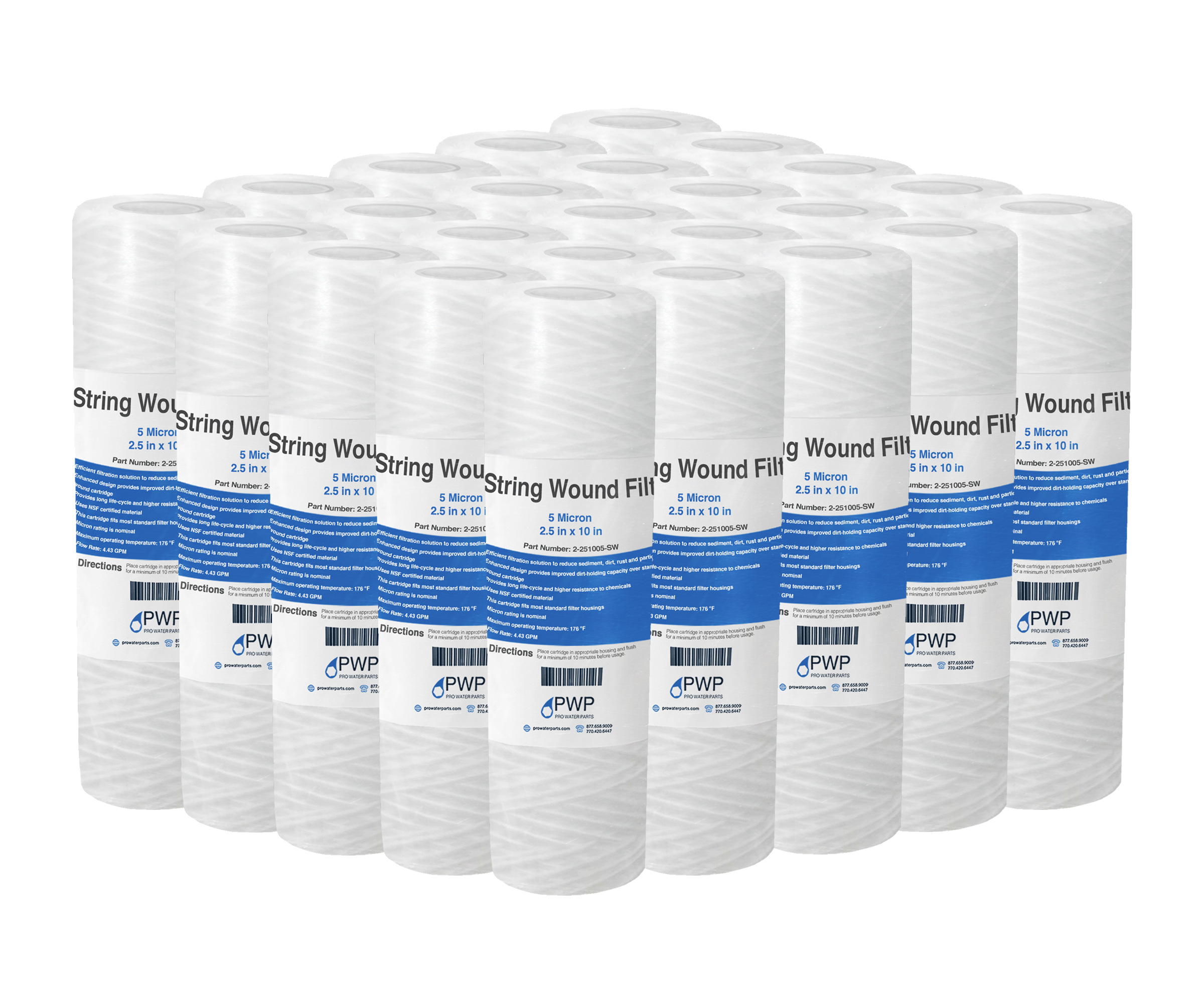 String Wound Sediment Water Filter Cartridge Standard 2.5x10" 5 Micron 25 Pack