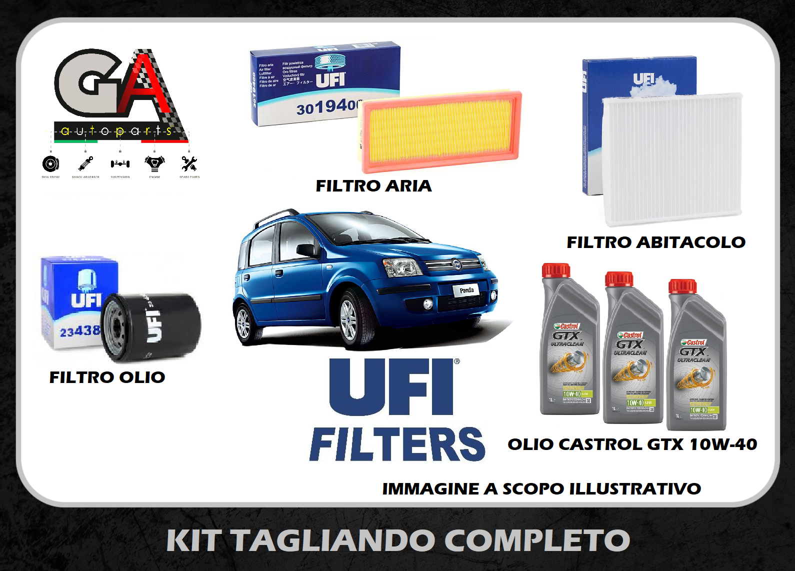 Kit tagliando Fiat Panda 2 169 1.2 benzina filtri UFI + 3l Castrol GTX 10w40