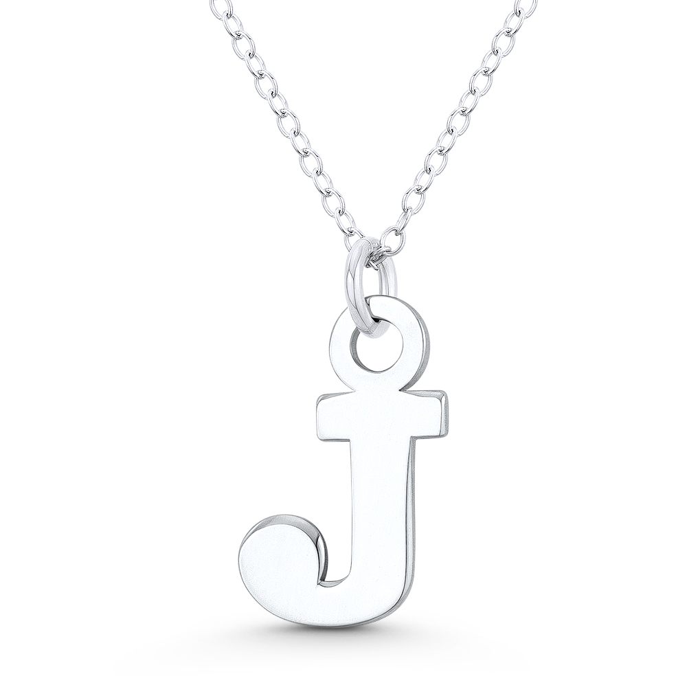 Initial Letter "J" 20x12mm (0.8in x 0.5in) Charm Pendant in .925 Sterling Silver