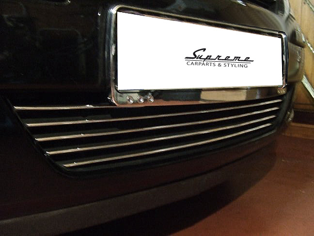Lieferumfang: passgenaue Chromzierleisten für alle Querstreben des unteren Kühlergrills