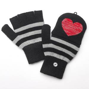 Keep the cold front at bay with these SO flip-top fingerless gloves. The adorable red heart with silver metallic threads and stripes design is sure to add a fun look to your cold-weather routines.
