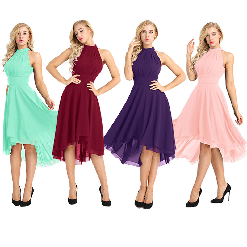 Women ladies gorgeous chiffon bridesmaid dress, super soft chiffon make this dress flowy and elegant.