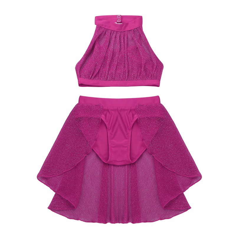 Set Include: 1Pc Ballet Crop Top, 1Pc Skirt