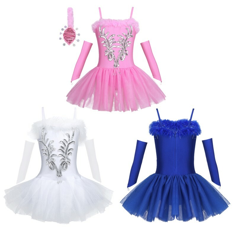 Ballet outfit is made of polyester, spandex and mesh material, hand wash.