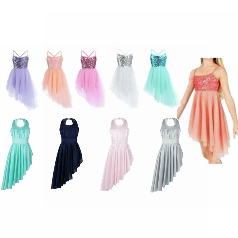 Ruffled irregular chiffon skirt is attached around the elastic waist. Beautiful dancewear for your girl.