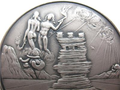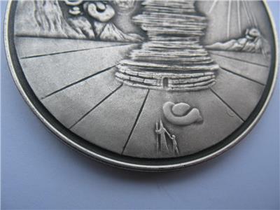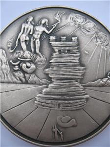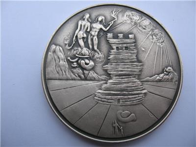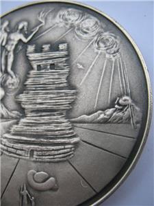 You are bidding on a SALVADOR DALI ART MASTERPIECE OF TRIBES SYMBOL MINTED BY MEDALLIC ART COMPANY N.Y. 1948-1973 25TH YEAR ANNIVERSARY. EACH COIN HAS A LITTLE DIFFERENT WEIGHT BUT ALL ARE CLOSE TO 3 TROY OUNCES OF PURE SOLID SILVER