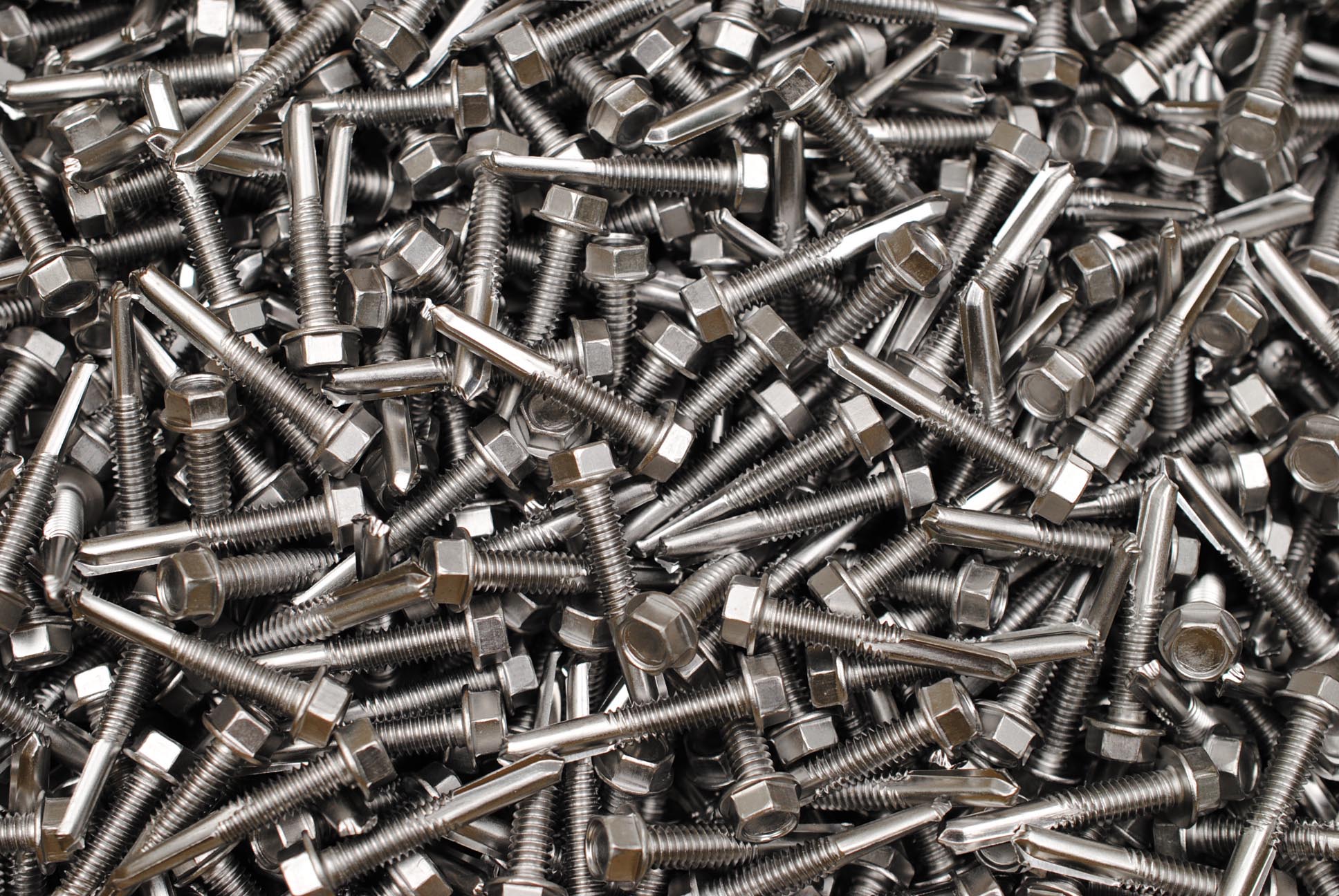 These screws feature a #5 drill point tip and are designed to drill through steel up to 1/2" thick.