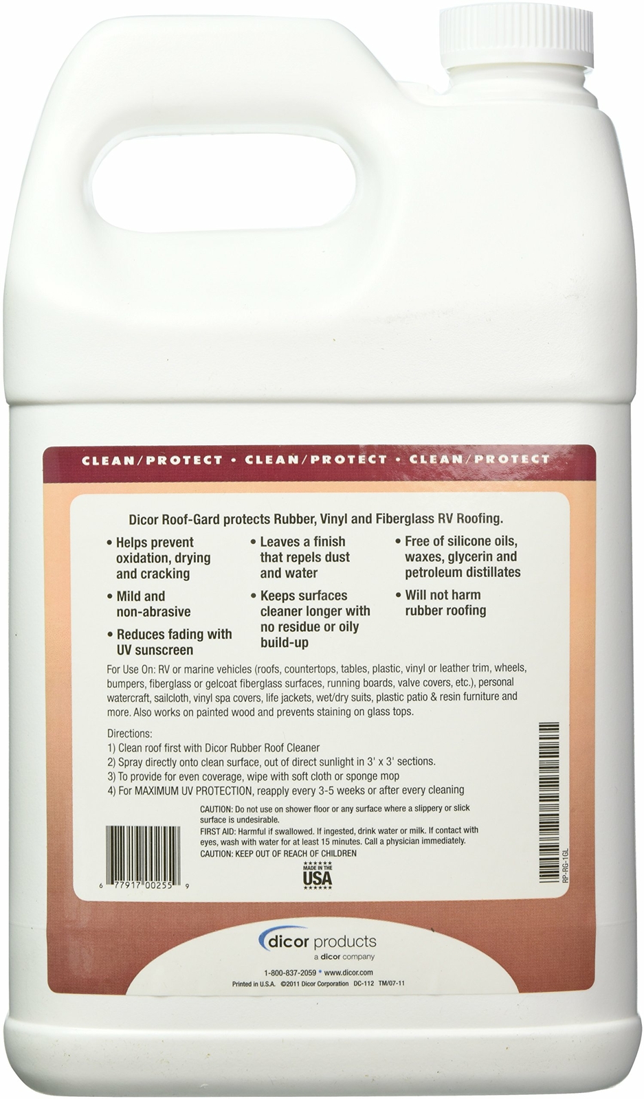 Helps prevent your EPDM rubber roof from fading, oxidizing, drying and cracking caused by harsh UV rays. Mild, non-abrasive formula keeps surfaces cleaner longer with no residue or oily build-up. Contains no silicone, waxes, glycerin or petroleum distillates. Simply spread evenly with mop or cloth and let air dry. Will not harm rubber roofing.