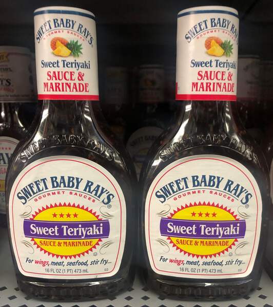 Sauce & Marinade, Sweet Teriyaki, Bottle 16 OZ Gourmet sauces. For wings, meat, seafood, stir fry. The sauce is the boss! Rich, sweet teriyaki flavor in a thick, pourable sauce that delivers a perfect punch to wings, stir fry, pork and poultry, and doubles down as a delicious dipping sauce. Try it out and see why we always say, the sauce is the boss. Sauce & Marinade, Sweet Teriyaki Gourmet sauces. For wings, meat, seafood, stir fry. The sauce is the boss! Rich, sweet teriyaki flavor in a thick, pourable sauce that delivers a perfect punch to wings, stir fry, pork and poultry, and doubles down as a delicious dipping sauce. Try it out and see why we always say, the sauce is the boss. - Sweet Baby Ray. Ingredients: Ingredients: High Fructose Corn Syrup, Soy Sauce (Water, Wheat, Soybeans, Salt, Sodium Benzoate [Preservative]), Sugar, Water, Vinegar, Modified Corn Starch, Contains Less Than 2% of Sesame Seed, Vegetable Oil (Soybean and/or Canola), Pineapple Juice Concentrate, Rice Vinegar, Ginger, Salt, Spice, Sodium Bisulfate, Garlic Powder, Xanthan Gum, Caramel Color, Sodium Benzoate and Potassium Sorbate (Preservatives), Dried Green Onion, Citric Acid, Calcium Disodium EDTA (To Protect Flavor). Directions: Instructions: Twist to open. Refrigerate after opening.