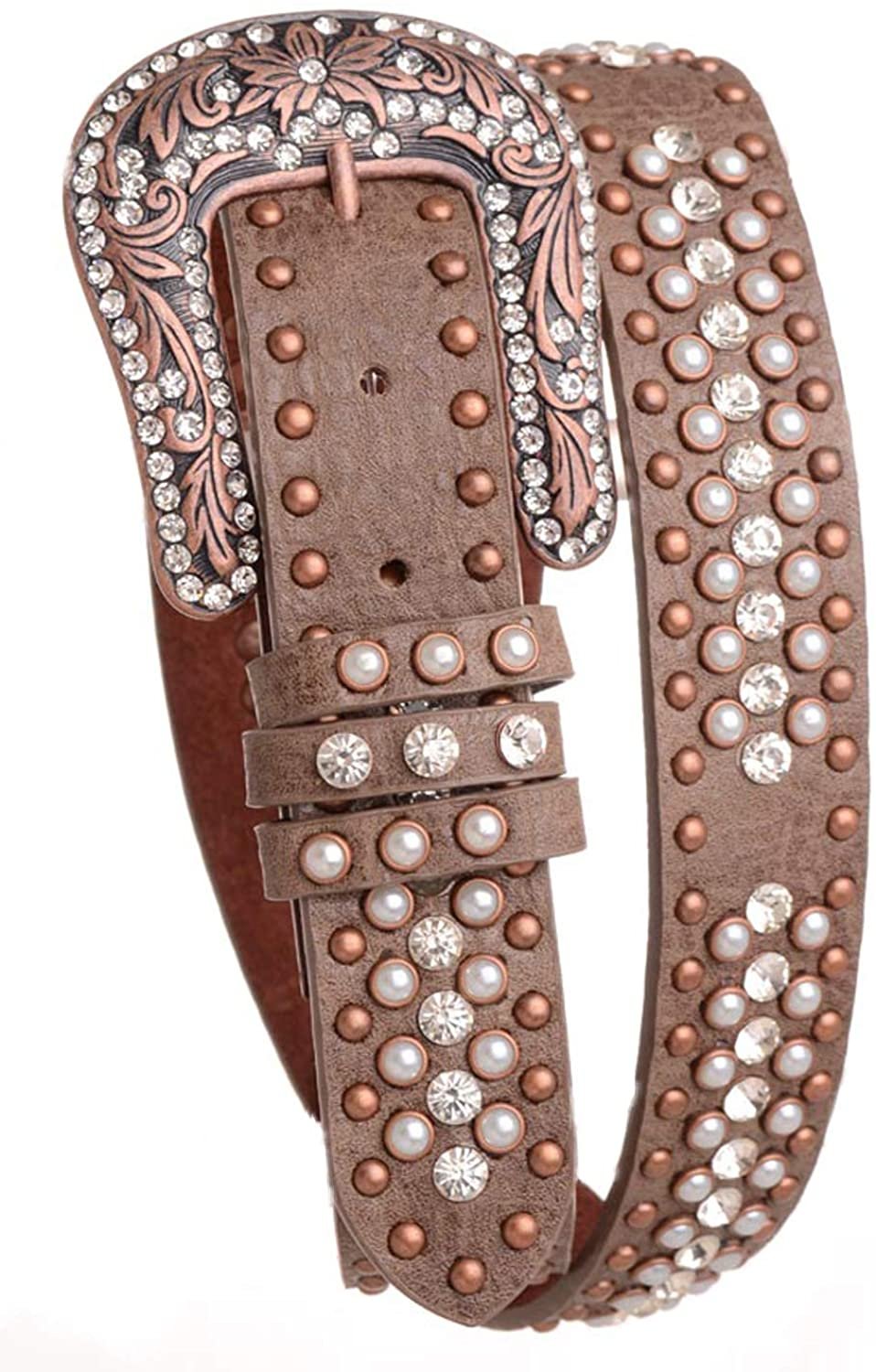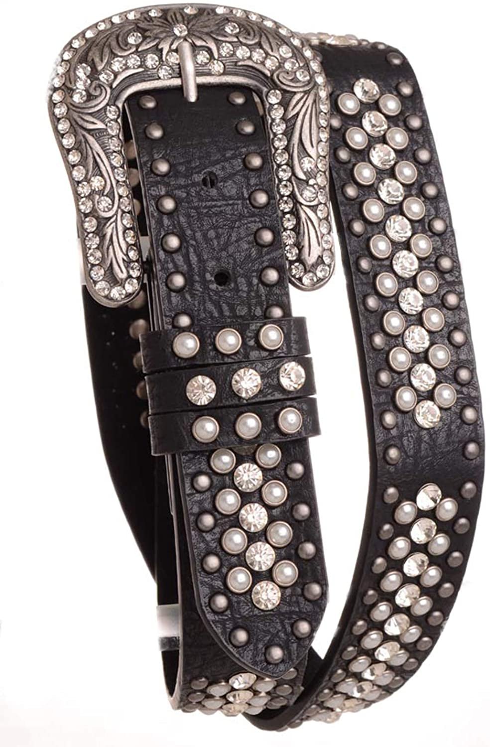 Nomad Creek Women's Pearl Rhinestone Studded Leather Belt