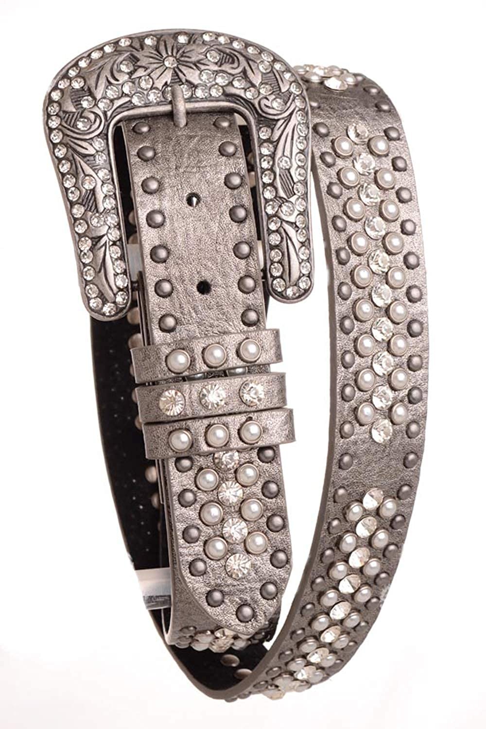 Kamberley Genuine Leather, Women's Pearl Rhinestone Studded Leather Belt