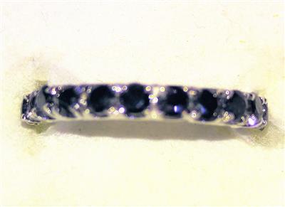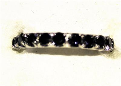 A sterling silver eternity band ring with 22-3mm 2.64 ctw round cut black spinel gemstones.
