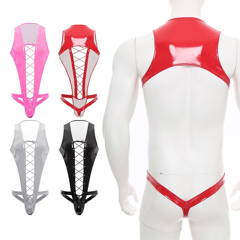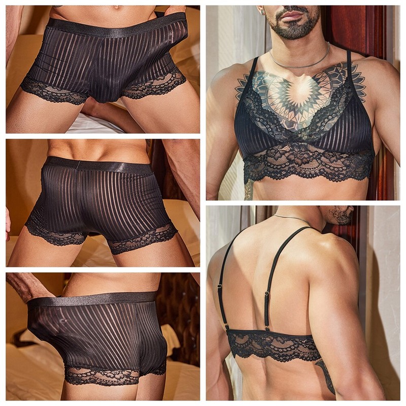 Mens See-Through Lace Briefs Bowknot Strappy Crotchless Underpants.