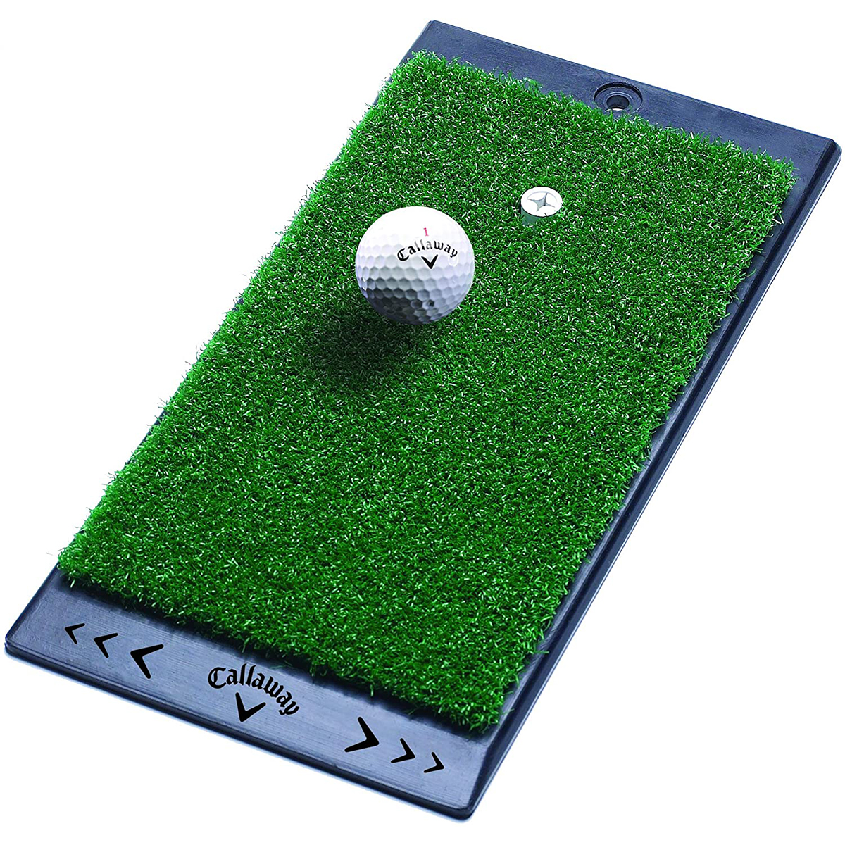 The Callaway Short Game Practice Set includes 3 great training aids to improve your wedge game and lower your scores. The triple chip pop-up chipping net opens quickly and features 3 different-sized targets for practicing chip, pitch and lob shots. The FT launch zone hitting mat simulates a real fairway and has a heavy duty rubber base to minimize sliding at impact. The soft flight HX practice balls simulate a real ball flight and won't damage clubs, people or objects.
