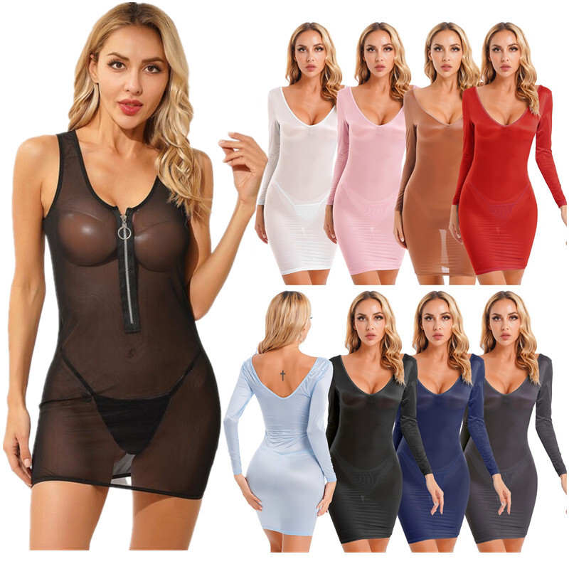Damen U-Ausschnitt Weit Schulterumfang Träger Bodycon Kleid Aushöhlen Minikleider Dessous Nachtwäsche.