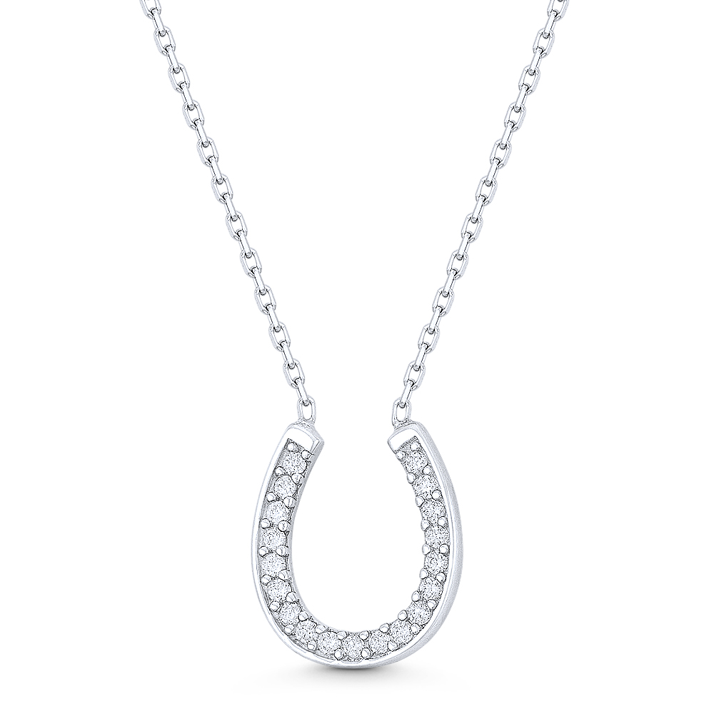 U Horseshoe Cubic Zirconia CZ Crystal Luck Charm Pendant & Chain Necklace in .925 Sterling Silver