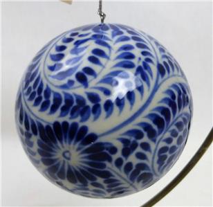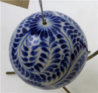 This unique glass ball or ornament comes from Viet Nam. It is beautiful in its simplicity; the white ball has deep blue flowers scattered around it, with leaves and swirls filling the background. I think this is a traditional design, as I have other items from Viet Nam with the same design. The ball measures 2 ½” in diameter and would look lovely on a tree or hanging from its silver thread. Some of the photos are shown on an ornament hanger, which is not included. There is no box but will be wrapped with care.