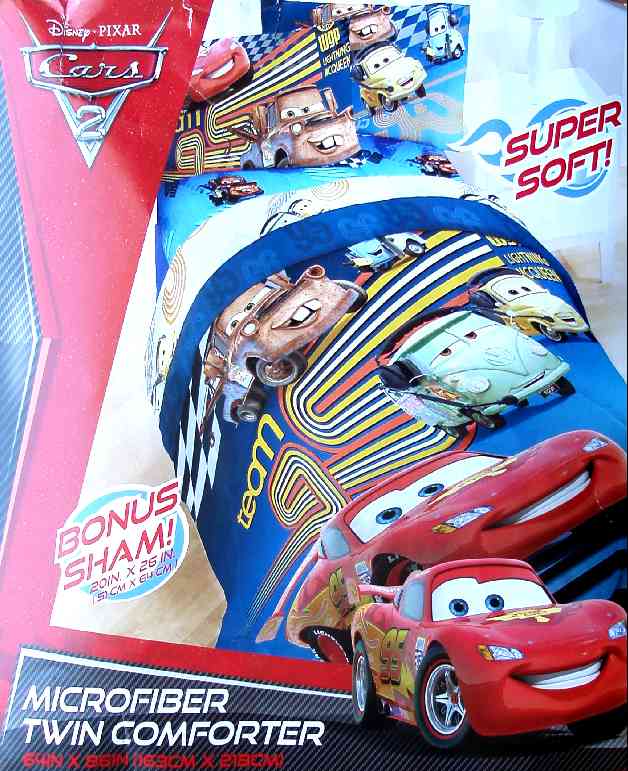 DISNEY CARS 2 TWIN COMFORTER SHEETS PILLOWSHAM 5PC BEDDING NEW :