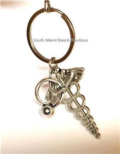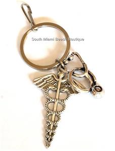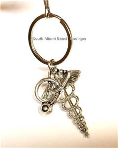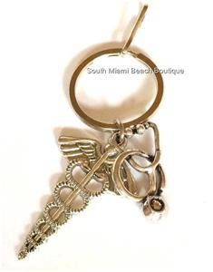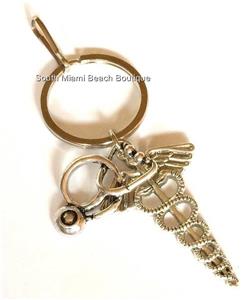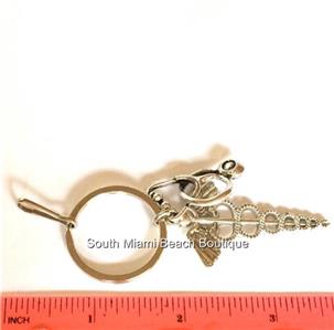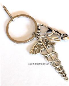 Silver Medical Caduceus Keychain or Keyring.