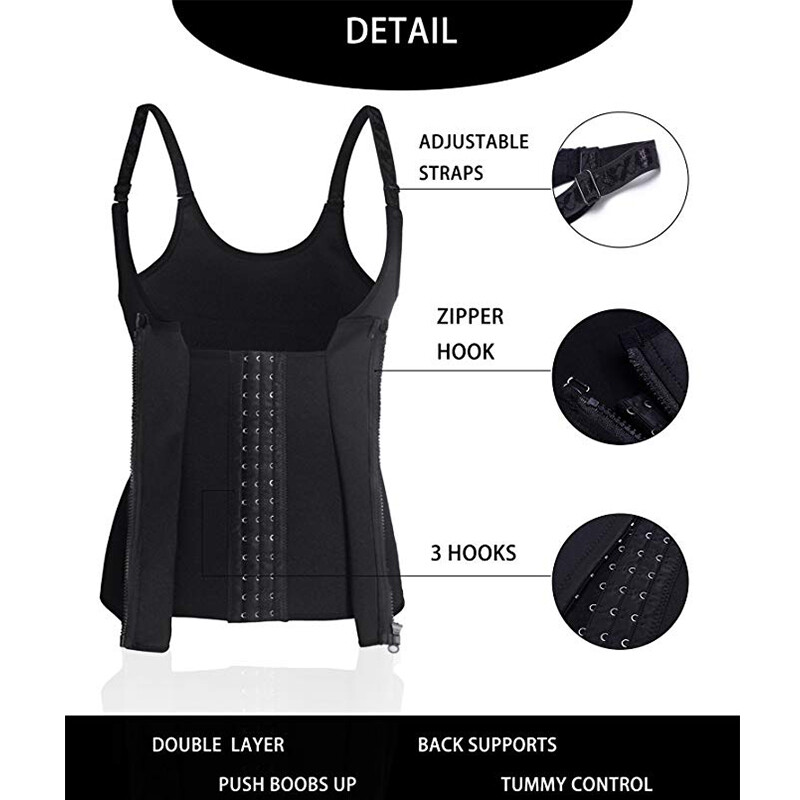 Three columns of hook-and-eye closures ensure this waist cincher vest could fit your figure at the most extent.Vest style make sure that this waist trainer won't lose when you take exercise.