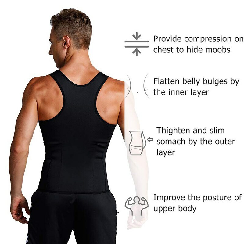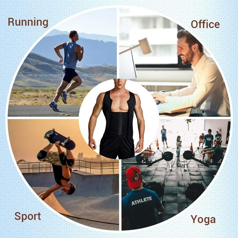 ➤INCREASE SWEATING UP TO 3 TIMES MORE: Men Body Shaper Vest By heating up your muscles and making you sweat 3 times more than usual,Sauna Tank Top helps you prevent injuries,release toxins at skin level and trim inches off of your waist quicker.Workout Shirt Making you sweat like crazy when you workout keeps you body warm during cold days, Corset training vest can be worn under or over your regular shirts