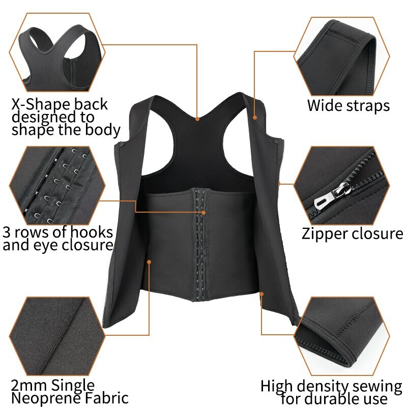➤WAIST TRAINER CORSET VEST:Made of comfortable&stretchy fabric,more durable.Our Vest would help both auto-regulate your body temperature and keep you comfortable,while the thermal layer speeds-up your bodys calorie burning processes.it have the internal thermal active layer, which stimulates perspiration and significantly speeds-up your metabolism.100% Latex-Free Neoprene Stretchy Comfortable Fabric, which means it is easy to clean, fits to your body, and will not pitch or irritate your skin
