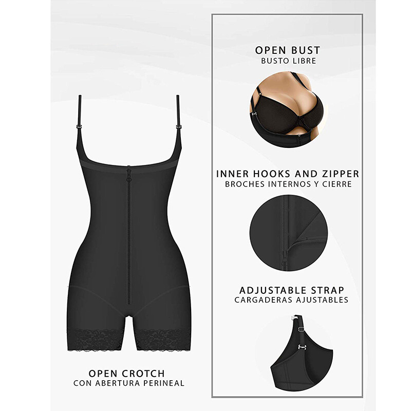 - 【Adjustable & Flexible】--- ✲ Straps are fully adjustable. ✲ Open Bust design allows you to wear your own favorite bra and push up your breast, effectively immobilize the loose fat that around your armpits and back. ✲ Also, Open crotch design makes it convenient to use in the bathroom.