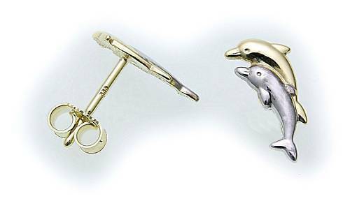 1 Paar süße Kinderohrringe Hund als Stecker in echt Gold 333/-