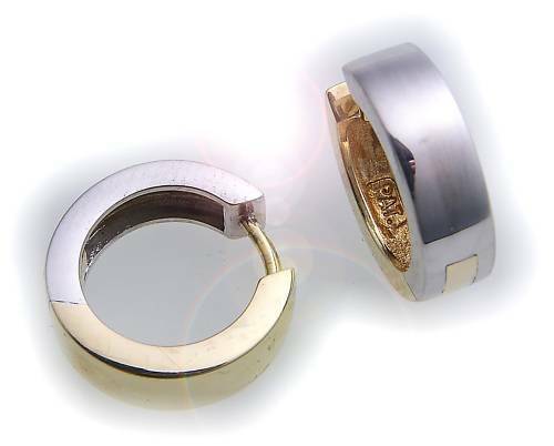 Sofort Kauf 585 Gold Herren Single Ohrring Klapp Creolen Bicolor echt 14 karat Glanz 15 mm
