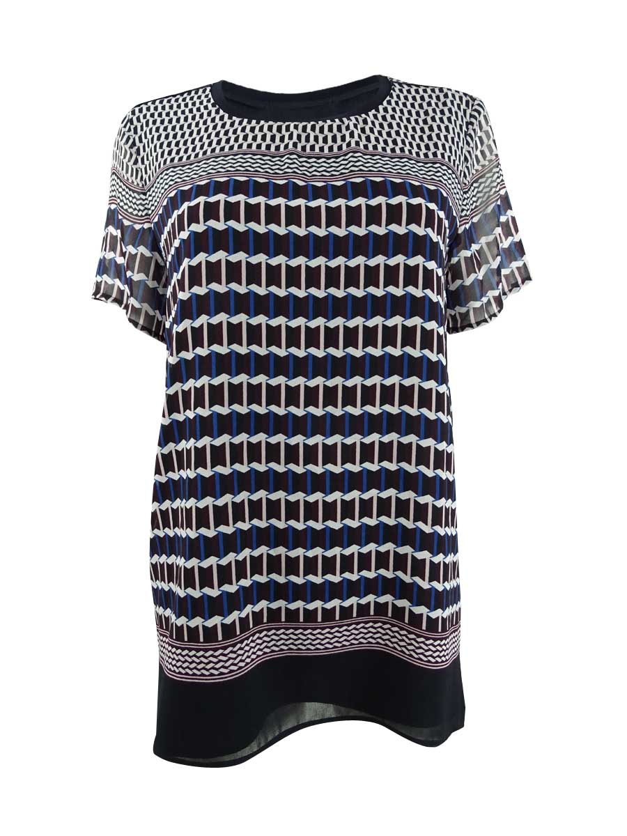 DKNY Women's Printed Crewneck Top (XS, Navy Multi)