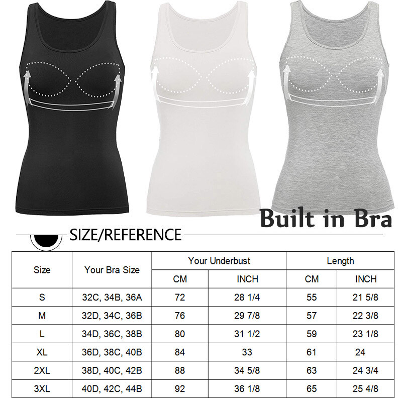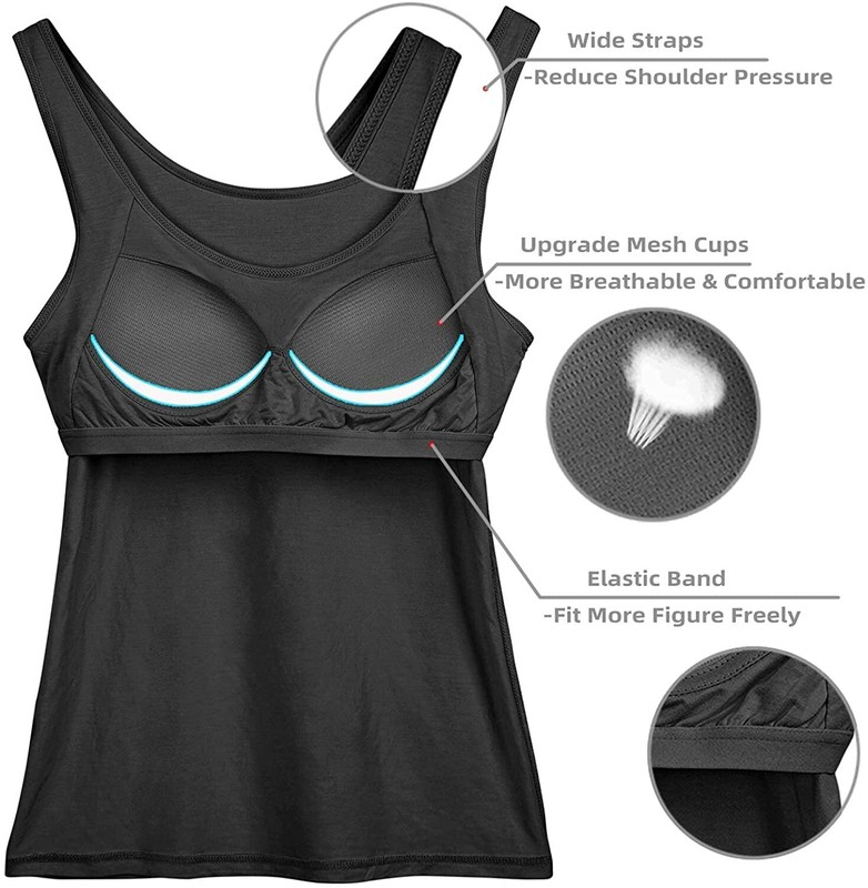 ♥ MULTISIZE SELECTION:Our tank tops with shelf bra for women has five different sizes for lady to choose from. You can check our size chart to the stretch cami, or choose the size of the women undershirts according to your own preferences.This cotton tank tops we provide is S M L XL XXL.
