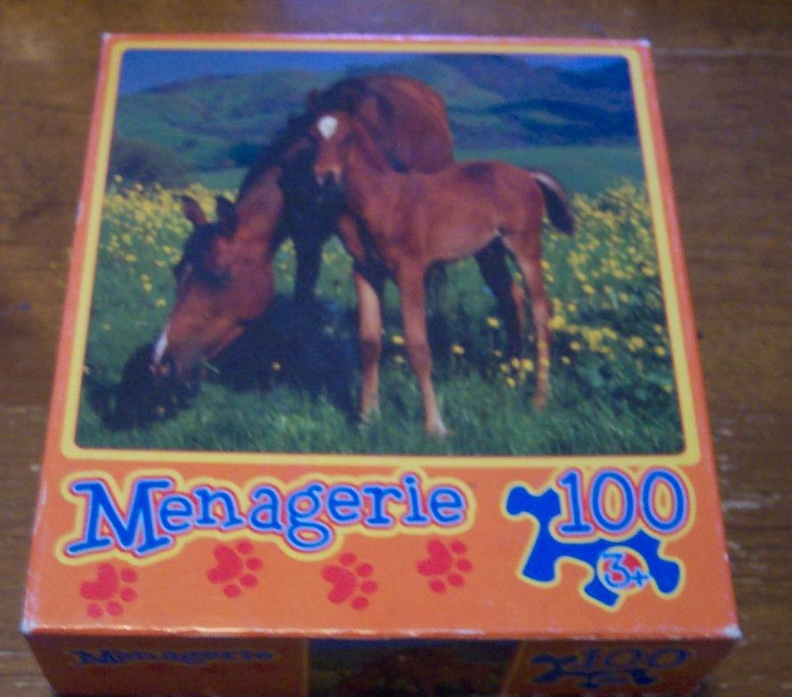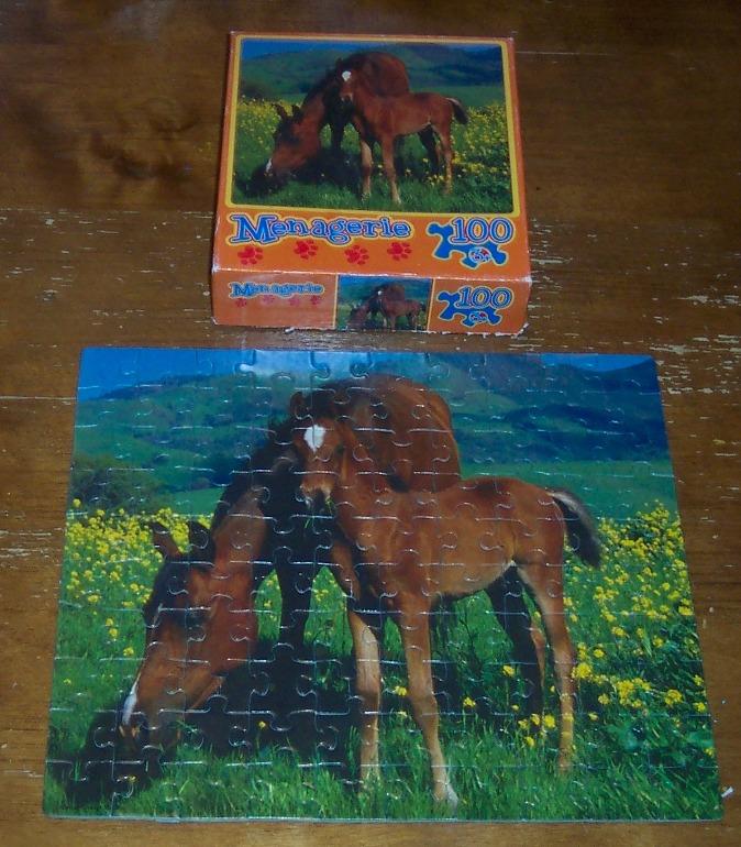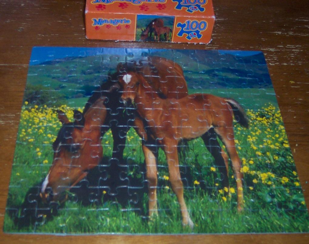 This is a MANAGERIE HORSE PONY JIGSAW PUZZLE. Made by Roseart. It has 100 Pieces. It is in great condition and is complete with all the pieces. Puzzle is 9 1/8" X 10 3/8" (29.2 Cm X 26.4Cm) AG