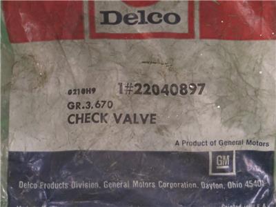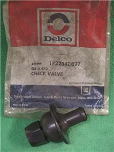 This listing is for one new old stock GM Delco Part # 22040897 A I R Emission Smog Secondary Air Injection Check Valve in the original AC Delco / GM packaging. Superseded GM # 12562568, 22048221, 22050633, 22016902, 22034703, 22041203, 22048218, 22048219, 22040839. Stamped as 22041203 / 20289. In opened original packaging, although outer packaging shows dirtiness age or storage wear. See the 11 expanding pictures provided for any further additional information to make sure this is the item that is actually needed before purchasing. As this is a non-returnable item. Thank you