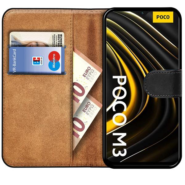 Basic Etui im klassischen Portemonnaie-Design für Dein Xiaomi Poco M3 in Schwarz