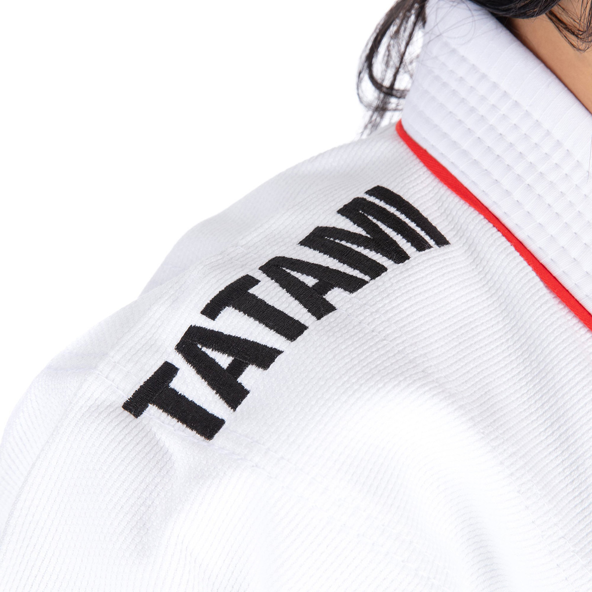 The Tatami Fightwear Women's Bushido BJJ Gi is part of Tatami's range of functional, lightweight and stylish gi. In line with the wider Bushido collection, this gi variant is an ode to the Asian influences in martial arts. This design includes embroidered Tatami patches on the shoulders, inside leg and lower jacket as well as the Bushido logo on the arm. The striking design on the Bushido is complete with a red strip on the end of the lapel. The gi itself features a 350 GSM jacket and 8 oz. ripstop pants for a lightweight and comfortable feel.