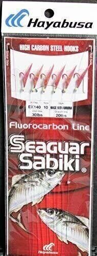 Elevate your saltwater fishing game with the Hayabusa EX140-10 Sabiki Seaguar Red Hook Red Aurora Sz 10 rig, a premium bait fishing essential designed for targeting baitfish like mackerel, sardines, and herring in coastal waters. Crafted with 100% genuine Seaguar fluorocarbon branch lines for superior invisibility and strength, this 6-hook sabiki rig features high-carbon steel red hooks in a striking aurora finish that mimics natural prey, ensuring maximum hookups and easy bait retention. Ideal for bottom fishing or jigging from piers, boats, or kayaks, the 30lb monofilament main line paired with 20lb fluoro branches offers unmatched durability against tough saltwater conditions. Whether you're a seasoned angler chasing limits or a beginner stocking up on reliable tackle, this Japanese-engineered rig from Hayabusa delivers consistent performance and value—perfect for your next offshore adventure.
