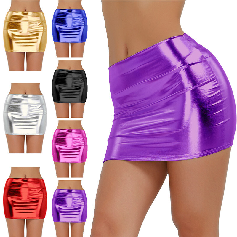 US Womens Bodycon Mini Dress Patent Leather Shiny Skirt Cocktail Club Part Night