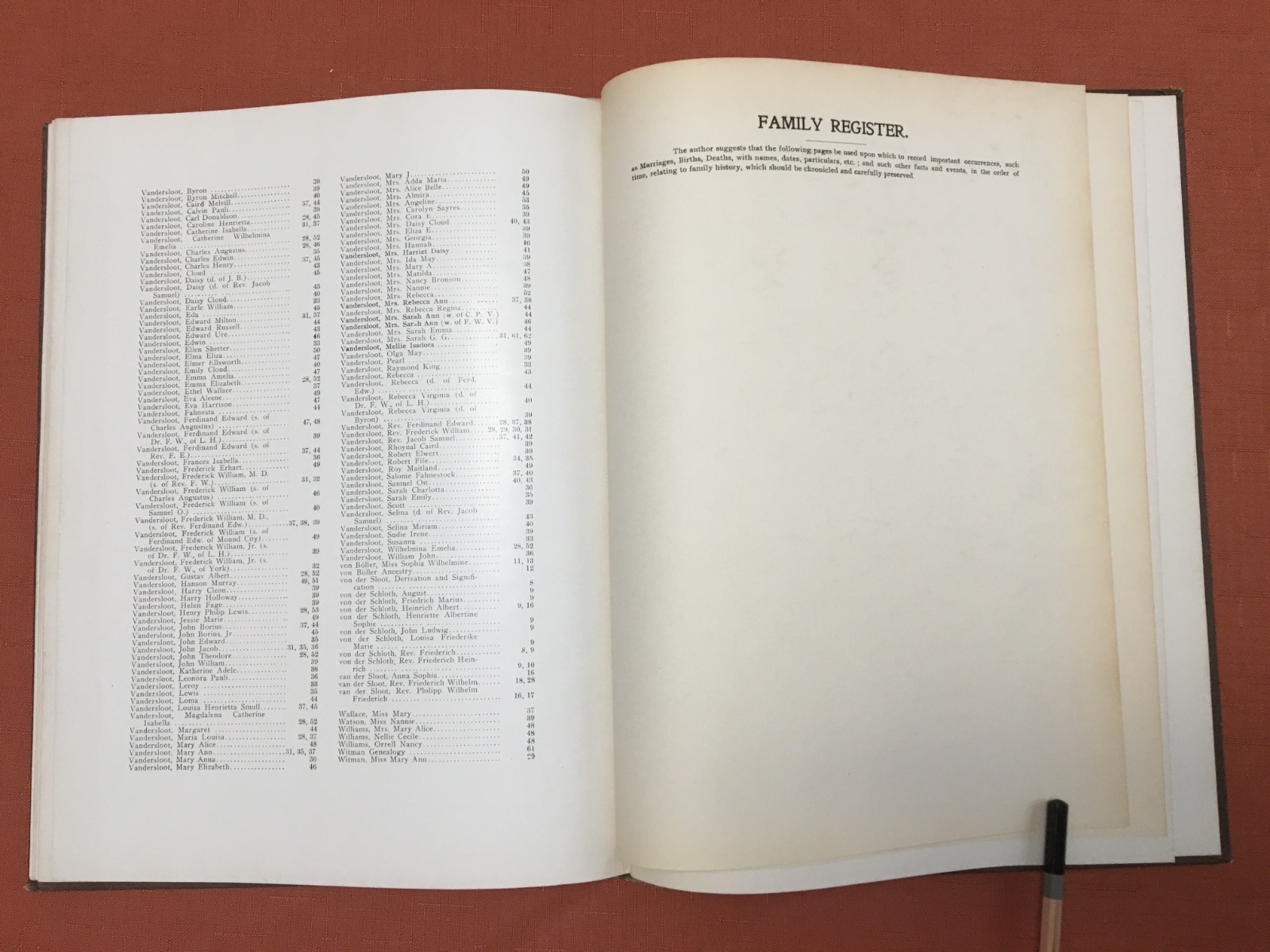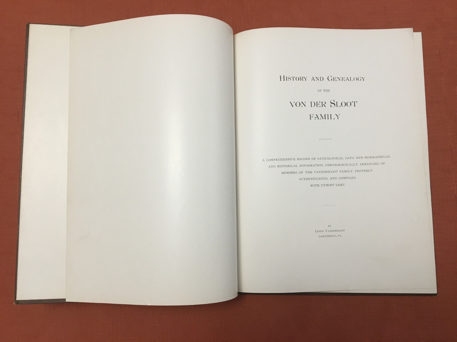 A COMPREHENSIVE RECORD OF GENEALOGICAL DATA AND BIOGRAPHICAL AND HISTORICAL INFORMATION, CHRONOLOGICALL ARRANGED, OF MEMBERS OF THE VANDERSLOOT FAMILY, PROPERLY AUTHENTICATED, AND COMPILED WITH UTMOST CARE
