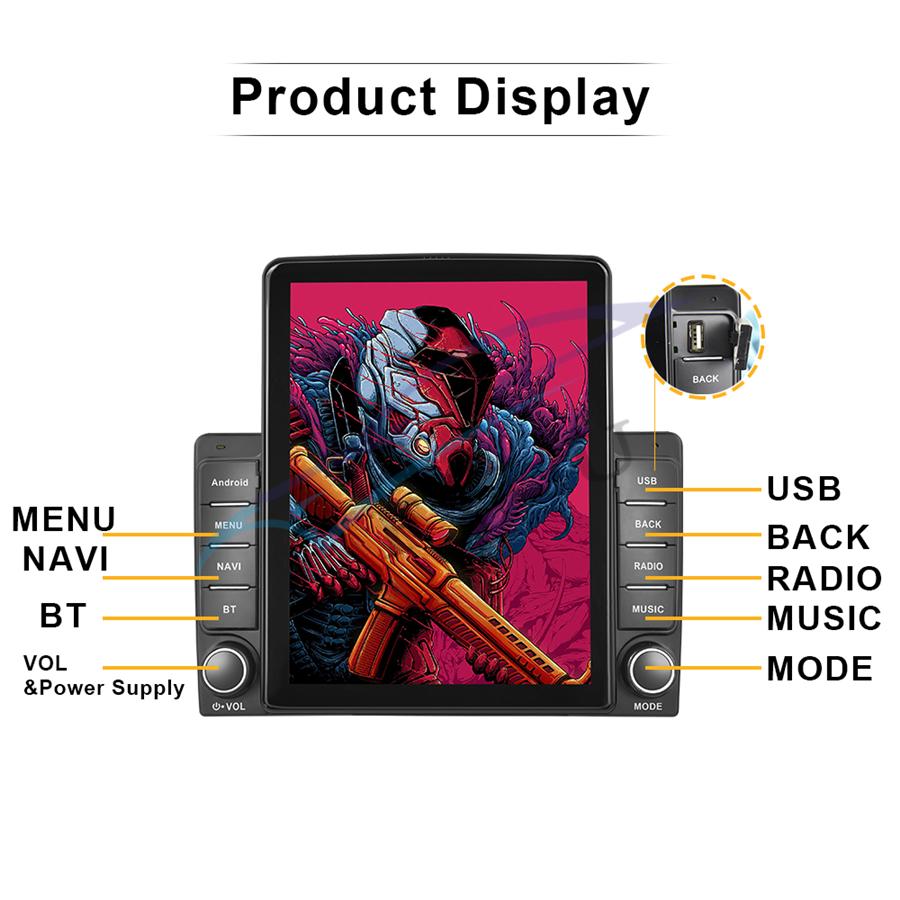 General | - Power Supply: DC 12V (allowance range: 10.8-14.5V) - Max. Current: 10A - Screen Size: 9.5 inch - Front panel Size: As picture show |