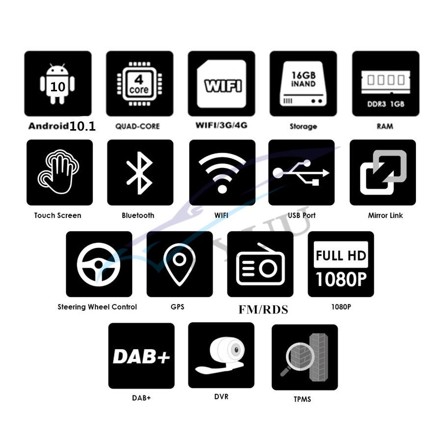 Additional | - Textbook: Could change font, font color, background color, bookmark, reading E-book while listening music - Photo Viewer: Support JPS, BMP, PNG, GIF etc. format. play by revolve, Powerpoint Support 4096*4096 Pixels - Wallpapers: 5 live wallpapers, 17 standard wallpapers, support DIY wallpaper from Gallery - 7 Colors Button adjustable - Support Torque Pro(OBD2 &Car): Yes, you can connect a Bluetooth OBD2 Scanner Tool to use this function - Support Mirror Link function: Yes, support screen mirroring from iPhone and android smartphone - Support TPMS: YES (Not Included) |