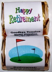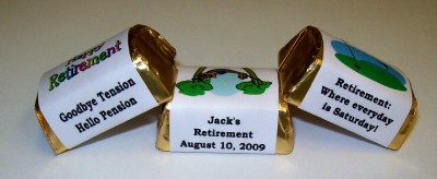 This auction is for 60 self adhesive candy wrapper stickers that fit perfectly around H. Nugget mini chocolate candies (candy not included). Your friends & family will love these little favors with your very own personalization on them.