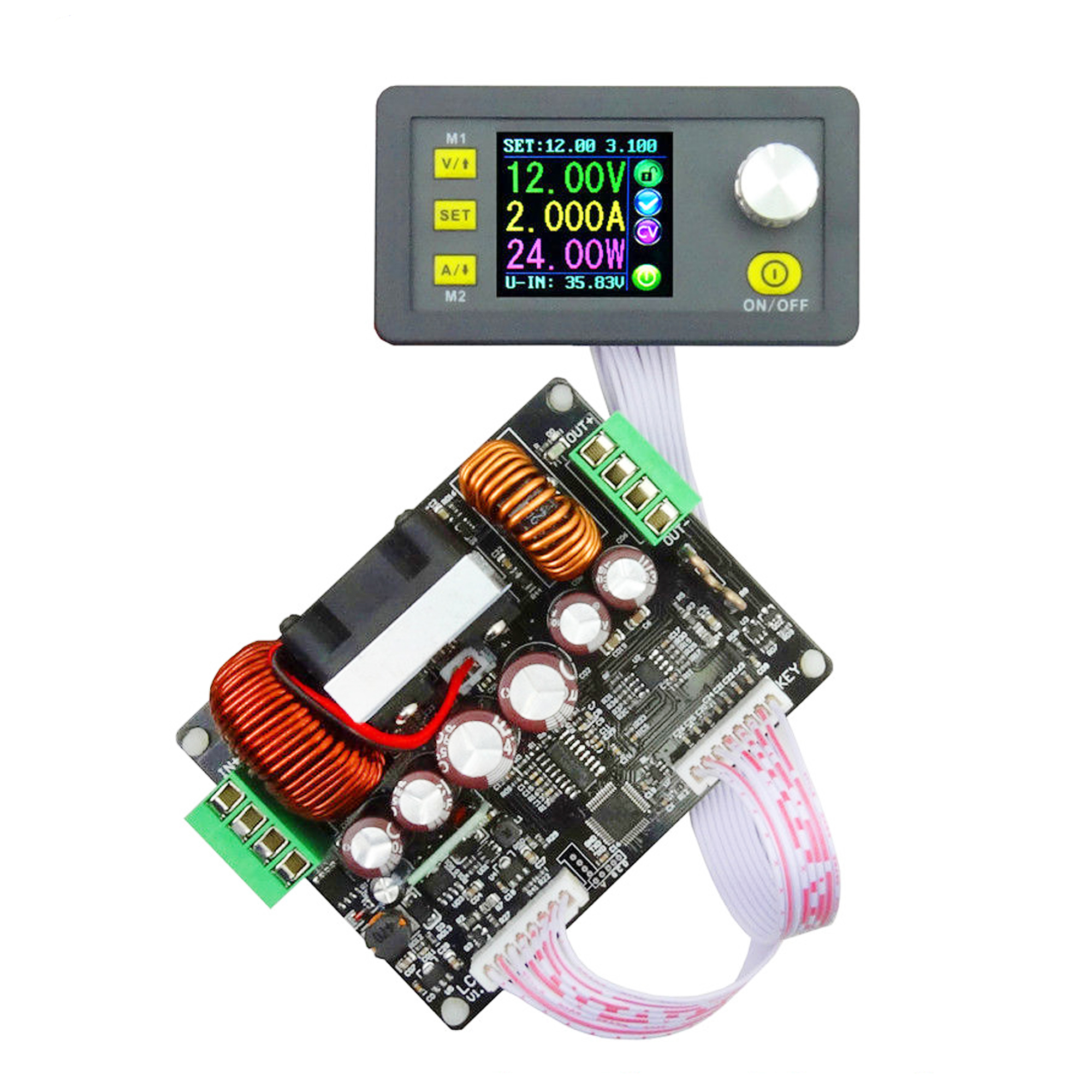 The constant voltage current programmable power supply module makes analog integration and digital control functions combined in one. Its adjustable output voltage range is 0-50.00V, step by 0.01V; its adjustable output current range is 0-5.000A, step by 0.001A. This module has power-down stored function that it can store 10 groups of preset values and extract 2 groups of stored values. Compared with the traditional analog power supply, it is more convenient to quickly extract the voltage or current required. With LCD display, user can view the preset voltage, input voltage, output voltage, the preset current, output current, output power, etc. This module has many advantages, small size, advanced function, good visual effect, high operability, high-precision, being used independently, being inset into the device and been widely applied.