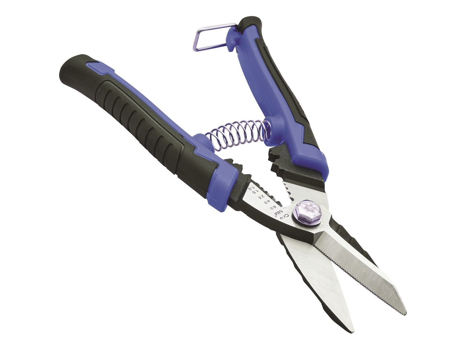 The Faithfull Heavy-Duty Multi-Function Snips are ideal for cutting a range of materials including carpet, steel wire, rope and PVC sheets. Manufactured from heavy-duty CR-V, ensuring resistance to abrasion and corrosion. The snips include a wire stripping function which features the most common sizes, plus a handy crimping action.